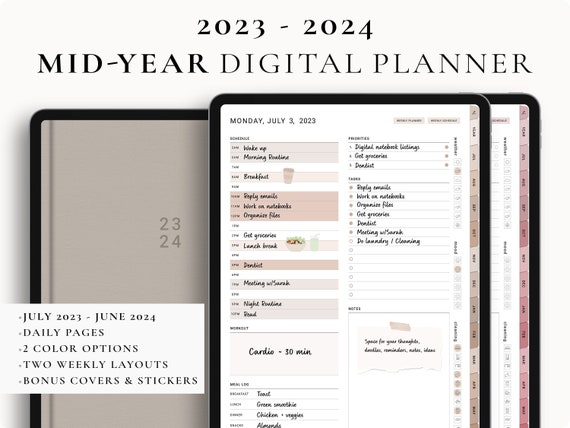2023 2024 Digital Planner Goodnotes Planner Mid year Etsy